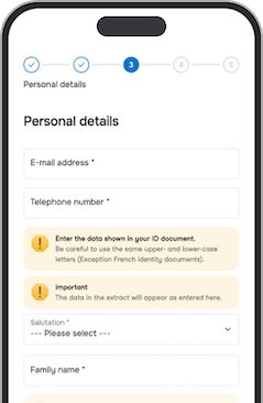 Conveniently from anywhere - fast, uncomplicated and without waiting times at the counter. Location-independent and efficient.